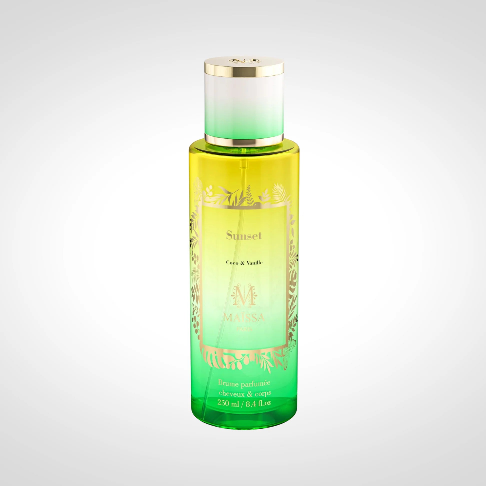 Sunset de Maison Maïssa capture la magie d'un coucher de soleil en flacon. Cette brume parfumée vous enveloppe d'un souffle chaud et fruité, comme une peau caressée par les derniers rayons du soleil. Parfaite pour les beaux jours, elle offre une sensation de bien-être, de liberté et de sensualité discrète à chaque vaporisation.